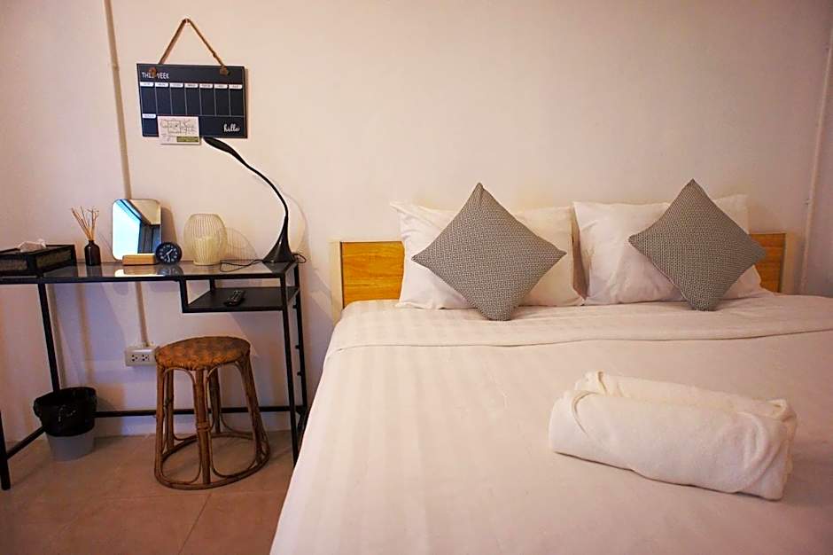 This room type is located on the 4th floor next to the shared bathroom. It does not have a window. The unit offer 1 bed, Queen size with air-conditioned includes a TV with streaming services and a shared bathroom.